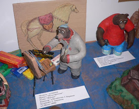 Пластилиновые проекты студии Татарского. Помните замечательный проект "Гора самоцветов" со сказками всех народов, живущих в России? А тем, кто ездит в московских маршрутках наверное знакомы мультики про мишек, которые рассказывают о городах России. У нас на Юго-западных маршрутах всю зиму крутили в салонах новых маршруток мультики про Нижний Новгород, Пензу и Москву. Вот эти пластилиновые куклы выставлены там.