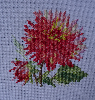 Потом схватила маленькую картинку с георгином (набор "Алисы"), которую мне подарила Света. Спасибо, ДЕВОЧКИ, вы вернули меня к вышивальной жизни).